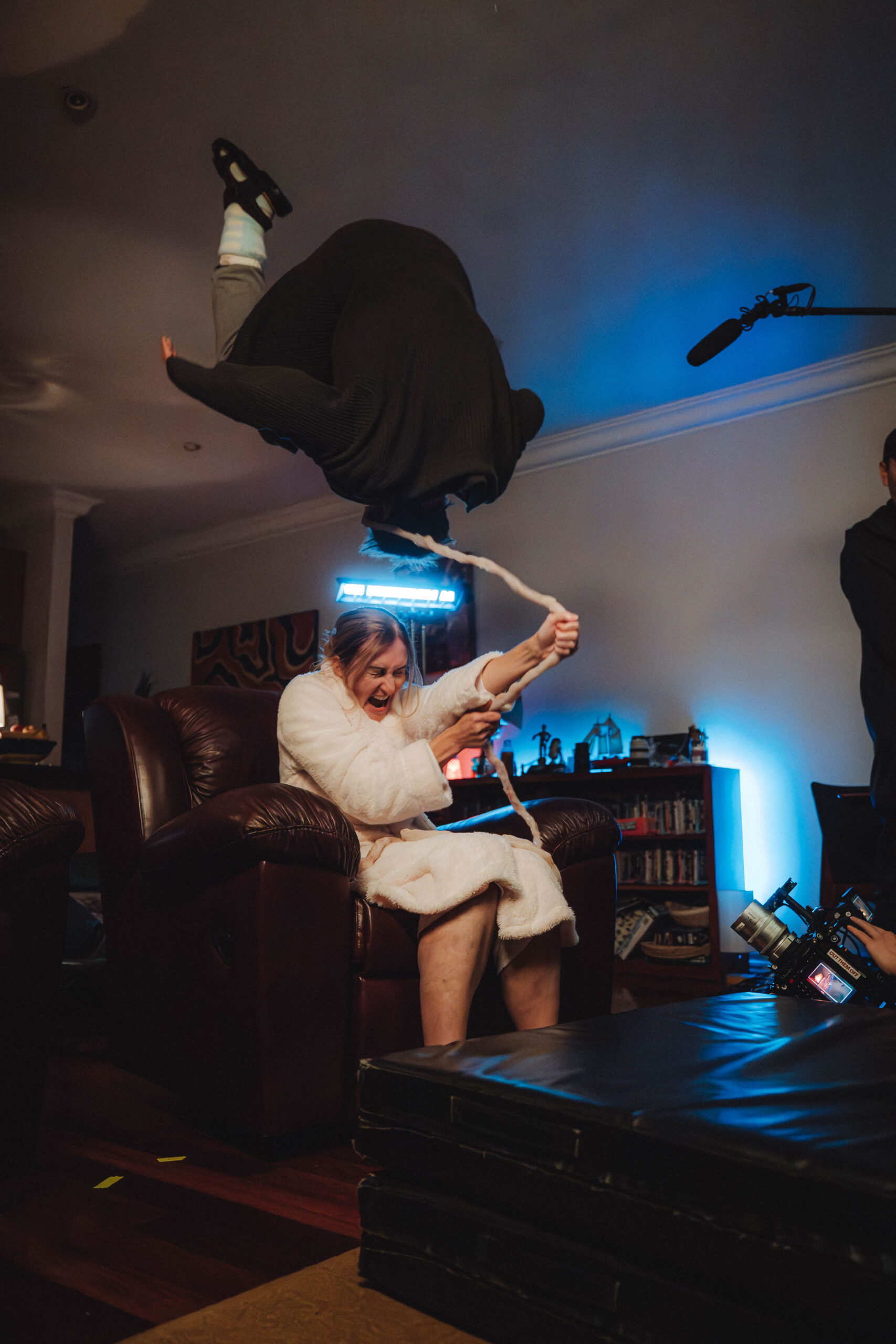 To dramatise the emotional burden many older Australians feel around inheritance, we’ll use a darkly comic visual metaphor: a fully grown adult still tethered to their mother by an umbilical cord.